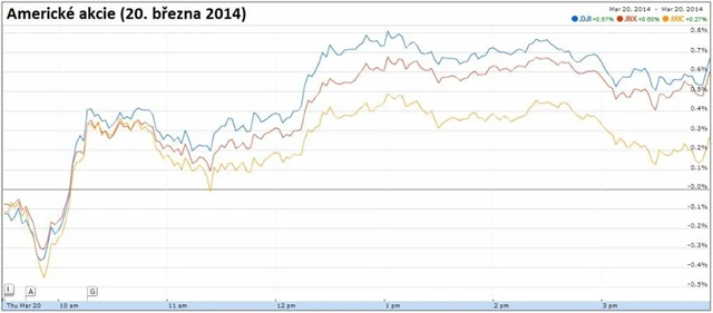 Americké akciové trhy zahajovaly čtvrteční obchodní seanci s mírnými ztrátami. Nadějné regionální údaje z průmyslu a příznivá dílčí zpráva z amerického trhu práce je však krátce po zahájení obchodování vynesly do zelených čísel. Wall Street nicméně v rychlejším růstu bránila nejistota ohledně vyhlídek zvyšování úrokových sazeb, kterou na trhy přineslo středeční vyjádření šéfky Fedu Janet Yellenové. Ta ve středu oznámila, že Fed omezí tempo nákupu dluhopisů o dalších 10 miliard dolarů.