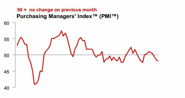 Index aktivity zpracovatelského sektoru se podle rychlého odhadu snížil na 48,1 bodu z únorové hodnoty 48,5 bodu. Opět tak zůstal pod hranicí 50 bodů, která odděluje růst od poklesu aktivity v sektoru. Průzkum HSBC se zaměřuje hlavně na menší společnosti v soukromém sektoru.