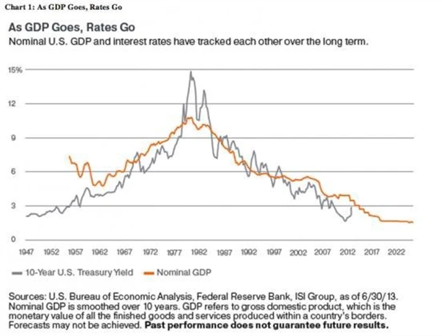 Zároveň se ale říká, že dluhopisový trh dobře předpovídá vývoj ekonomiky. Dluhopisoví obchodníci se vždy snaží předběhnout Fed a Fed se zase snaží předběhnout ekonomiku. Jak plyne z grafu, míra korelace mezi růstem HDP a sazbami je vysoká. Z toho všeho plyne, že sazby porostou jen v případě, že poroste ekonomika. Není tedy důvod dělat si starosti.