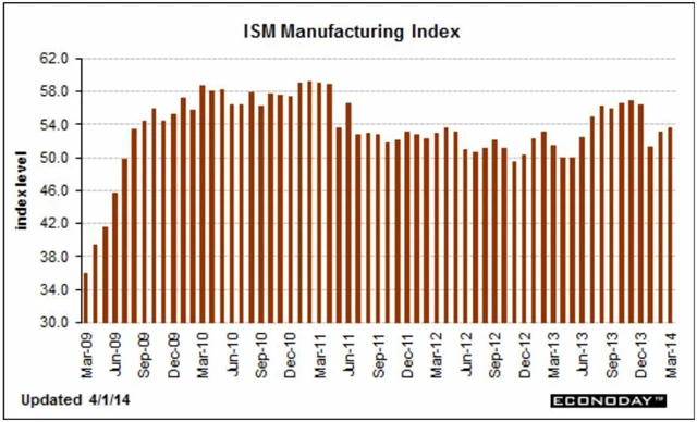 Index nákupních manažerů ve zpracovatelském sektoru zpracovávaný agenturou ISM v březnu vzrostl druhým měsícem v řadě, tentokrát na 53,7 bodu z 53,2 bodu v únoru. Čekal se růst indexu na 54 bodů.