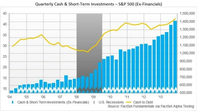 Solidní zisky, vysoké marže a nízké výdaje znamenají, že hotovost v rozvahách společností zařazených v indexu S&P 500 rapidně narůstá. Podle zprávy společnosti FactSet zveřejněné minulý pátek generují společnosti S&P 500 hotovost rekordním tempem.