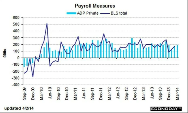 Americká ekonomika vytvořila v březnu téměř 200 tisíc nových pracovních míst v soukromém sektoru. Zprávu agentury ADP trh bedlivě sledoval, protože by mohl být indikátorem pátečních souhrnných dat za celou ekonomiku.