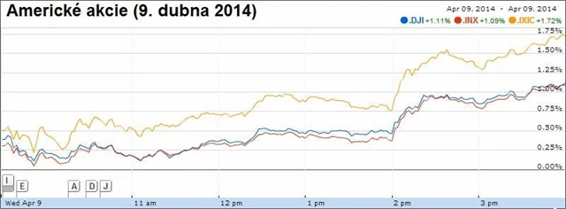 Americké akcie zdražily o více než procento. Dařilo se jim od začátku obchodní seance, zveřejněný zápis z březnového zasedání FOMC býčí náladu ještě podpořil.
