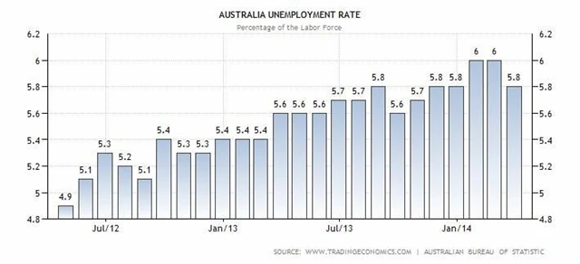Míra nezaměstnanosti u protinožců klesla na 5,8 %, čekala se stagnace na únorové úrovni 6 %. Přibylo 18 100 zaměstnaných. Zpráva pomohla během nočního obchodování australskému dolaru, který v páru s tím americkým přidával zhruba 0,2 %.