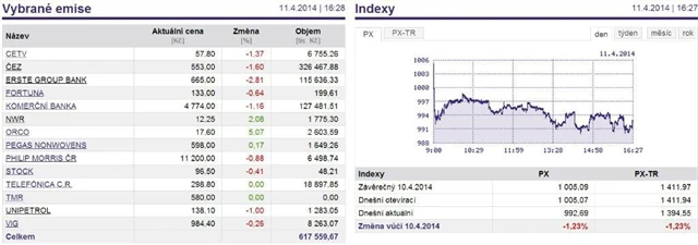 Index PX v pátek odepsal 1,23 % na 992,69 bodu.