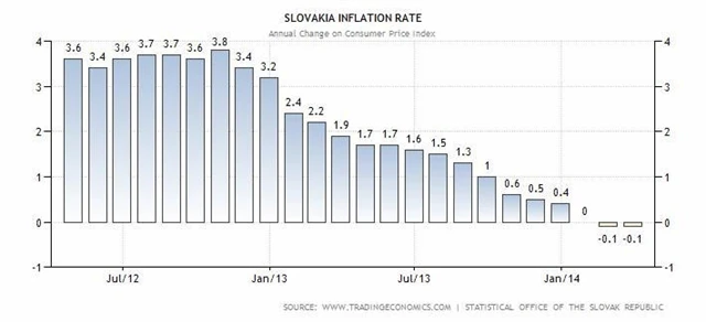 Slovensko v březnu zůstalo v deflaci. Spotřebitelské ceny v meziročním srovnání stejně jako v únoru klesly o 0,1 %. Informoval o tom slovenský statistický úřad. V meziměsíčním srovnání se ceny zboží a služeb v březnu nezměnily, v předchozím měsíci klesly o 0,1 %. Analytici očekávali, že spotřebitelské ceny na Slovensku v březnu proti loňsku už nebudou pokračovat v poklesu.