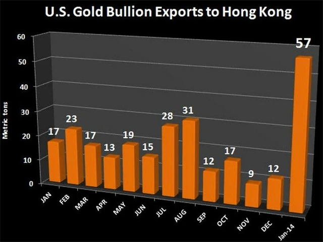 Podle zveřejněných dat vyvezly Spojené státy v lednu do Hongkongu rekordní množství zlata. A nejen že to byl sám o sobě rekordní měsíc, bylo to dokonce více než za předchozí čtyři měsíce dohromady.