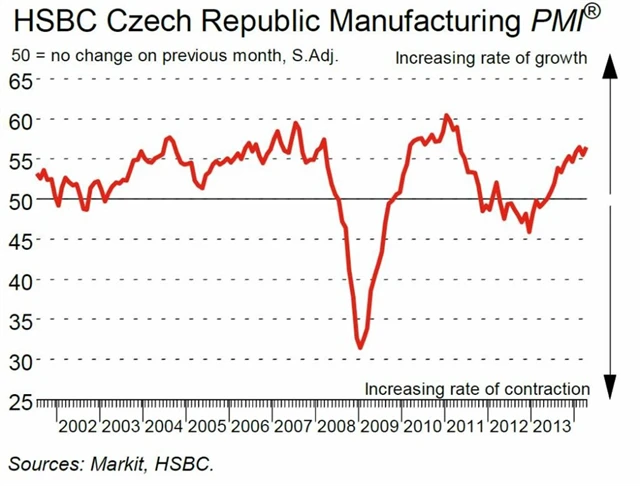 Česká republika: Index nákupních manažerů ve zpracovatelském sektoru v dubnu vzrostl na 56,5 bodu z 55,5 bodu v březnu