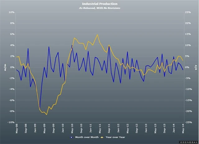 Produkce ve zpracovatelském sektoru se snížila o 0,4 %. Největší vliv na to měla produkce polotovarů, která klesla o 0,9 %, naopak produkce spotřebního zboží se zvýšila o půl procenta. Stavební sektor zaznamenal pokles o 2,2 %, produkce energetického sektoru však vzrostla o 1,8 %.