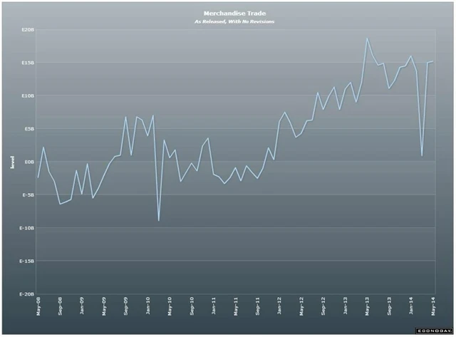 Po očištění o sezónní vlivy skončila březnová obchodní bilance eurozóny s přebytkem 15,2 miliardy eur pod očekáváním 17,3 miliardy eur. V únoru skončila sezónně očištěná obchodní bilance s přebytkem 13,9 miliardy eur.