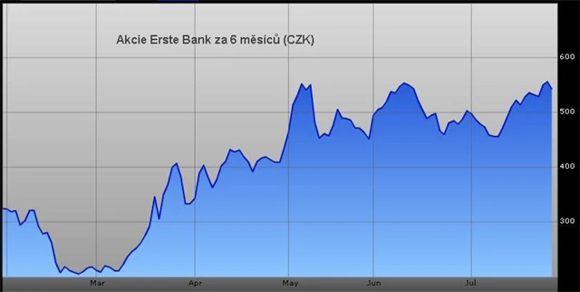 Na vývoj akcií Erste bank měly v poslední době příznivý vliv dobré hospodářské výsledky bank v USA a zlepšující se situace na akciových trzích. Což se odrazilo v růstu ceny od únorových minim kolem 7€ na akcii (přibližně 200kč) k současným 17-22€ (460 – 560 kč).