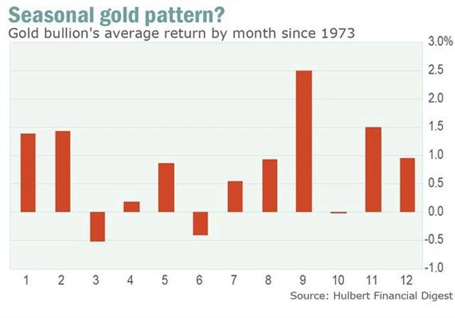 Proč zlaté býky neznepokojuje slabý výkon zlata? Jedním důvodem může být sezónní slabost trhu se zlatem v květnu a červnu. Například Richard Russell, editor Dow Theory Letters, svým klientům vysvětluje, že cena zlata má tendenci v těchto měsících klesat a na dno zpravidla spadne v červenci. "Pokud se zlato nepropadne do července, považoval bych to za býčí signál pro tento kov," píše Russell.