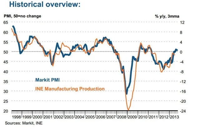 Španělsko: Index nákupních manažerů ve zpracovatelském sektoru v květnu vzrostl na 52,9 bodu z 52,7 bodu v dubnu Redakce IW2. 6. 2014 | 9:15Indexy nákupních manažerů (PMI)Zdroj: MarkitIndexy nákupních manažerů (PMI)ŠpanělskoRedakce IW Další články autoraTOP 10 článků týdne: Vize Nvidie, americké akcie a víra ve zlatoOčekávané výsledky světových firem v týdnu od 3. listopadu: McDonald’s, Palantir, Ryanair, BMWTrump: Dohoda s Čínou je na světě, vzácné zeminy budeme dále řešit na roční báziDoporučujemeNestihli jste naskočit do zlaté rally? Vůbec není pozdě, říká stratégZlato Rychlé peníze ve velkém opustily zlato a stříbro. Trh se připravuje na další růstZlatoAuto jako služba: Operativní leasing stále více láká domácnostiFinanční sektor Aktuality1. 11. | 17:00Buffettův indikátor je fake news. Drahé americké akcie mají logiku1. 11. | 15:24Buffettova Berkshire Hathaway v kvartálu výrazně zvýšila zisk, v hotovosti má už 381 miliard dolarů1. 11. | 14:07Dálniční boom v Česku: Vzniká prostor pro nová průmyslová centra, mapa české logistiky se mění1. 11. | 10:55Nová starost pro trh s drahými kovy: Čína zrušila daňové zvýhodnění pro obchodníky1. 11. | 9:37Kolik budou v roce 2026 platit OSVČ na paušální dani?31. 10. | 21:30Závěr týdne se na amerických burzách vydařil. Investoři sčítají zisky za pátek, týden i celý měsíc31. 10. | 18:00Evropské akciové indexy v pátek klesly. V týdenním horizontu se na směru neshodly, říjen už ale pro ně byl ziskový31. 10. | 16:53Akcie Redditu zdražily po výsledcích výrazně nad odhady31. 10. | 16:45Pražská burza v pátek posílila, skoro 5% zpevnění akcií Erste postrčilo index PX na nové maximum31. 10. | 16:16Akcie Luminar Technologies se zřítily po varování před nedostatkem hotovosti31. 10. | 16:06Indie obnovila nákupy ruské ropy od dodavatelů mimo sankční seznam31. 10. | 15:26Standard Chartered: Hodnota tokenizovaných aktiv do roku 2028 vzroste na 2 biliony dolarůZobrazit všechny aktuality Nejčtenější tento týden1.Nestihli jste naskočit do zlaté rally? Vůbec není pozdě, říká stratég2.Rychlé peníze ve velkém opustily zlato a stříbro. Trh se připravuje na další růst3.Auto jako služba: Operativní leasing stále více láká domácnosti4.Čtyři důvody, proč po korekci nakupovat akcie evropských zbrojovek5.Modlitba pasivního investora a jak podle expertů (ne)investovat v celní bouři6.Buffettův odkaz: Trpělivost jako klíč k investičnímu úspěchu Sledujte násinvesticniweb.cz14000Investiční web19300LIVE2300Investiční web1000investicni_web500Investicniweb.cz33600