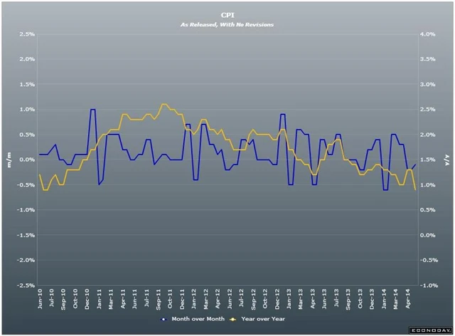 Meziměsíčně se v Německu spotřebitelské ceny v květnu snížily, a to o 0,3 % podle metodiky harmonizované s EU (odhad: +0,1 %, duben: -0,3 %) a o 0,1 % podle neharmonizovaných čísel (odhad: +0,2 %, duben: -0,2 %). Důvodem je především pokles cen energií.