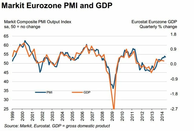 Sektor služeb v eurozóně v květnu expandoval rychlejším tempem. Index nákupních manažerů vzrostl z dubnových 53,1 bodu na 53,2 bodu, očekával se přitom ještě vyšší růst na 53,5 bodu. Kompozitní index klesl na 53,5 bodu z 54 bodů.