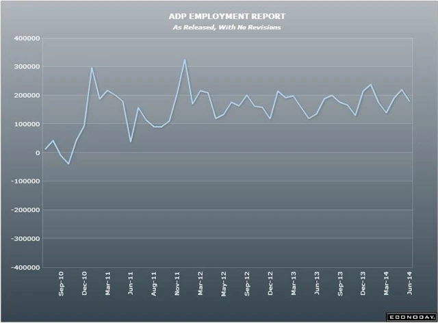 Pro trhy je 179 tisíc nových míst zklamáním. Údaje ADP sice nejsou plně korelovány s oficiálními údaji za soukromý sektor, které budou zveřejněny v rámci zprávy o zaměstnanosti v pátek, na trhy přesto budou mít vliv.