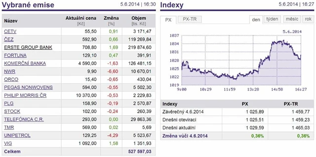 Index PX vzrostl o 0,36 % na 1 029,59 bodu.