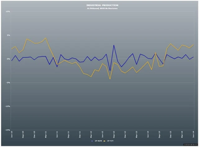 Britská průmyslová produkce v dubnu rostla již třetím měsícem v řadě. Oproti předchozímu měsíci se zvýšila v souladu s odhady analytiků o 0,4 % (statistika za březen byla revidována nahoru na 0,1 %). Ve srovnání s minulým rokem zrychlila tempo růstu dokonce na 3 %, což je nejvyšší hodnota od roku 2011.