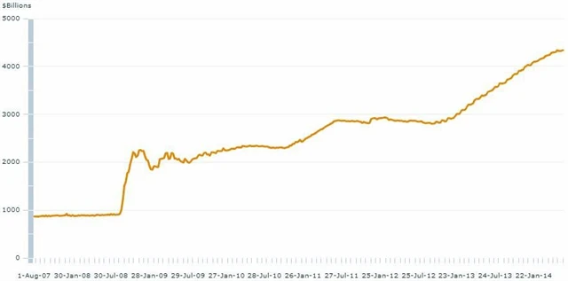 Od začátku finanční krize Fed v několika kolech kvantitativního uvolňování napumpoval do bankovního a finančního systému zhruba 3,5 bilionu USD.