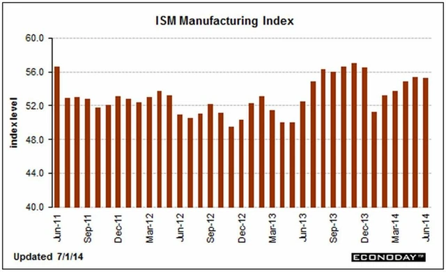 Aktivita v americkém zpracovatelském sektoru v červnu mírně zpomalila, přesto ale zaznamenala už 13. měsíc nepřetržité expanze. Index nákupních manažerů v americkém zpracovatelském sektoru sestavovaný institutem ISM v červnu meziměsíčně klesl o 0,1 bodu na 55,3 bodu. Čekal se růst o 0,4 bodu na 55,8 bodu. Nad 50 body, což znamená růst aktivity, se index pohybuje od loňského května.
