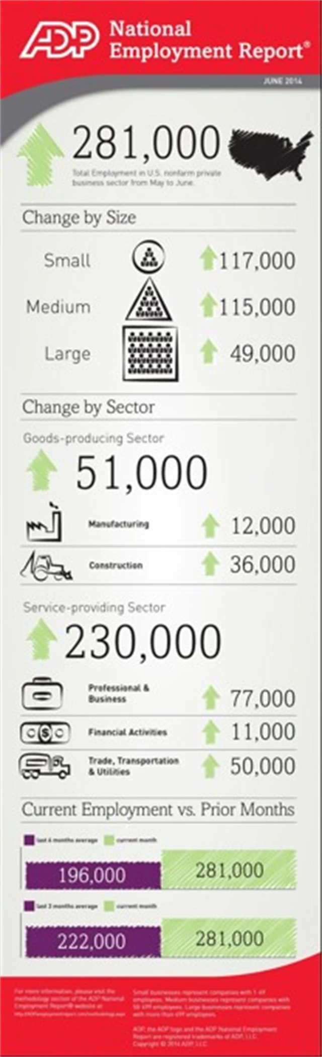 Soukromý sektor ve Spojených státech v červnu vytvořil mnohem více pracovních míst, než se čekalo. Zaměstnal 281 tisíc lidí, očekávalo se 205 tisíc po květnových 179 tisících.