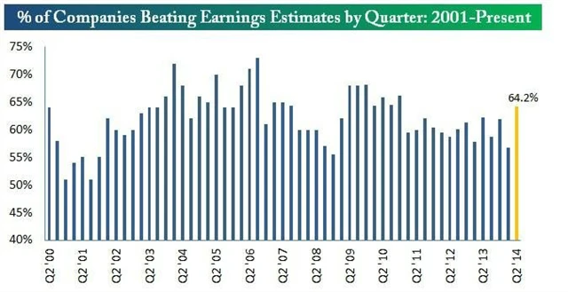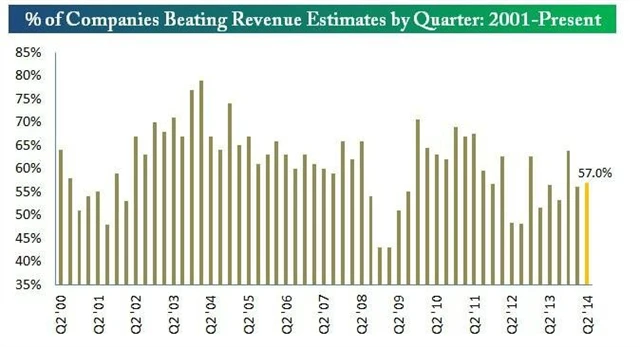 Výsledky za 2Q2014 sice oznámilo zatím jen 10 % firem, takže vzorek není velký, přesto je jejich úspěšnost obdivuhodná.