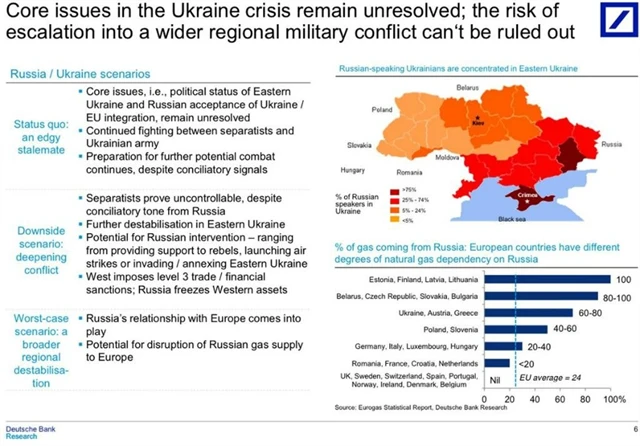 "Nejlepší" variantou vývoje je podle Deutsche Bank udržení statutu quo, během nějž budou dále probíhat boje mezi separatisty a ukrajinskou armádou a politický status Ukrajiny zůstane nevyřešen. Horší vývoj pak představuje možnost, že se separatisté stanou nekontrolovanou silou a východní Ukrajina se ještě více destabilizuje. V takovém případě by mohla hrozit ruská intervence a další vlna sankcí.