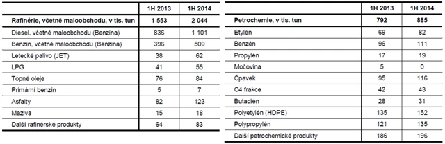 Odpis aktiv rafinérského segmentu v objemu 4,721 miliardy Kč způsobil propad provozního zisku EBITDA LIFO za druhý kvartál na -3,677 miliardy Kč ve 2. čtvrtletí 2014, jinak by dosáhl 1,044 miliardy Kč (o 381 milionů Kč více než loni), trh čekal jen 0,976 miliardy, a to díky lepším výsledkům petrochemického segmentu a očištěnému výsledku rafinérského segmentu, který znamená meziroční zlepšení fundamentální ziskovosti. Provozní ztráta rafinérií se v pololetí kvůli odpisu prohloubila na 3,9 miliardy Kč ze 495 milionů o rok dříve.