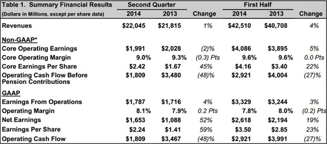 Základní zisk na akcii, který nezahrnuje penzijní náklady a některé další výdaje, stoupl na 2,42 dolaru z 1,67 dolaru před rokem. Firma navíc zvýšila odhad tohoto zisku pro celý letošní rok na 7,90 až 8,10 dolaru z dříve předpokládaných 7,15 až 7,35 dolaru.
