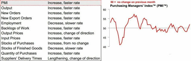 Podle zprávy HSBC se zvyšovaly nové zakázky a nové vývozní zakázky v červenci rychleji než v červnu. Zlepšení nastalo i v dalších kategoriích, včetně zaměstnanosti a výrobních cen.