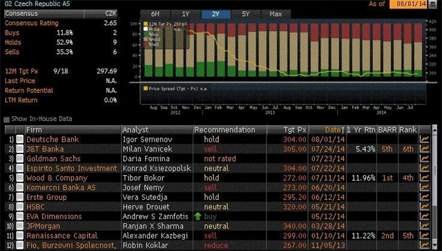 Přehled investičních doporučení, jak je sesbírala agentura Bloomberg: