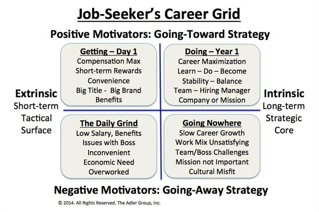 Při uvažování o změně zaměstnání někteří kandidáti přeceňují to, co v nové práci dostanou na začátku. I když může vše na první pohled působit lákavě, jde jen o krátkodobou motivaci. Pokud nová práce nenabízí dlouhodobý kariérní růst, uspokojení z práce brzy klesá a stejně jako u starého zaměstnání nakonec převáží dlouhodobá negativní motivace. Jde o začarovaný kruh nespokojenosti vedoucí k zaměstnanecké fluktuaci.