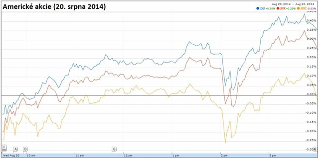 Americké akcie se v úvodu středeční obchodní seance pohybovaly mírně v mínusu, prakticky ihned ale začaly ztráty mazat a zanedlouho se dostaly do zelených čísel. Trhy celý den vyhlížely zveřejnění zápisu z posledního zasedání měnového výboru americké centrální banky. Krátce poté, co se tak stalo, investoři v reakci na větu, že je banka příjemně překvapena vývojem situace na trhu práce, začali prodávat a dva ze tří nejsledovanějších indexů poslali zpět pod nulu. Vyjádření Fedu totiž posílilo obavy, že by ke zvyšování úrokových sazeb mohlo dojít dříve, než se nyní očekává. Nakonec ale otočili a začali znovu nakupovat.