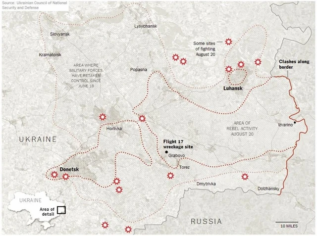 Ukrajinská armáda mezitím pokračuje v obléhání měst Luhansk a Doněck, která mají stále pod kontrolou proruští separatisté.