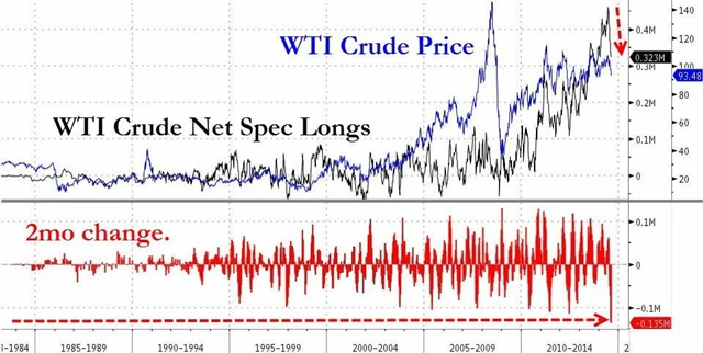Média klesající cenu ropy zdůvodňují různě - "nezávislostí" Spojených států na ropě z východu, "vítězstvím" západních sankcí nad Ruskem i zásahem amerických leteckých sil na Středním východě. Důvod je však jinde - investoři spekulovali na dramatický růst cen ropy, a když nepřišel, začali hromadně likvidovat dlouhé pozice. A to v rozsahu nikdy dříve nezaznamenaném.