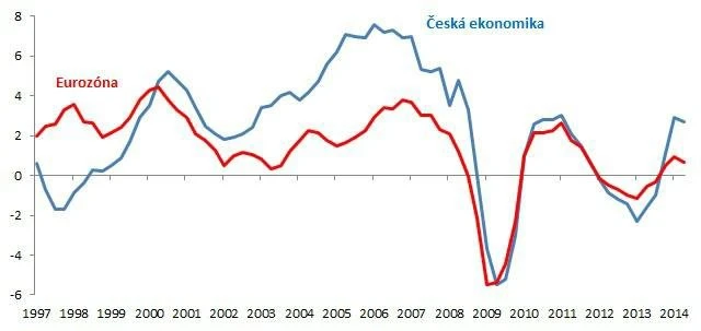Česká ekonomika má i přes nevalný výkon v posledních pěti letech potenciál převýšit výkon Eurozóny. Česká ekonomika nemá výrazné makro-ekonomické nerovnováhy a prošla bolestivým snížením rozpočtových schodků, což ji staví do příznivější pozice než velkou část zemí Eurozóny. A to nejenom v případě sílícího ekonomického růstu, ale také v období neduživého růstu v Evropě či dokonce nového hospodářského poklesu.