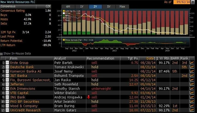 "Při stagnujících cenách uhlí by byla nutná další restrukturalizace dluhu během 2 až 3 let," dodal analytik z Komerční banky. Cena uhlí už přitom delší dobu stagnuje na nízkých úrovních. Komerční banka stanovila pro akcie NWR cílovou cenu 0,60 Kč s doporučením "prodat".