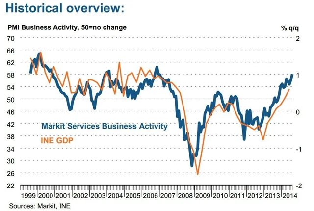 Index nákupních manažerů ve Španělsku v sektoru služeb se v srpnu vyšplhal nejvýše od prosince 2006. Dosáhl 58,1 bodu oproti červencovým 56,2 bodu. Kompozitní index se zvýšil na 56,9 bodu z červencových 55,7 bodu.