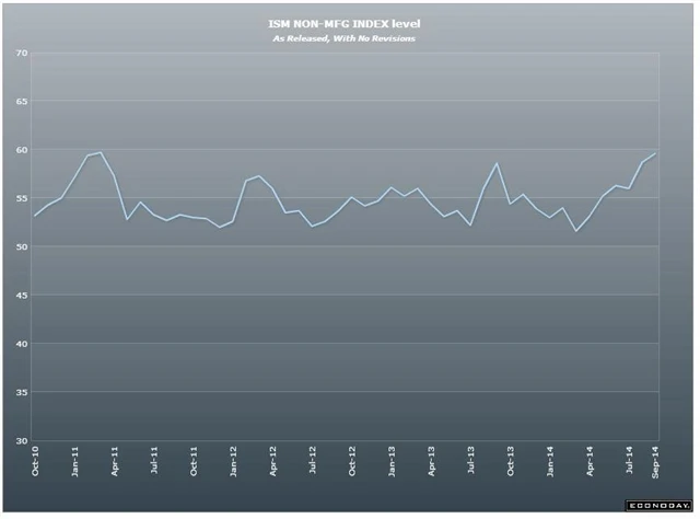 Index nákupních manažerů v nevýrobním sektoru vzrostl na 59,6 bodu z 58,7 bodu v červenci. Dostal se tak na nejvyšší hodnotu od srpna 2005. Čekal se přitom pokles indexu na 57,3 bodu. Nevýrobní sektor v USA zajišťuje více než dvě třetiny celkové ekonomické aktivity. Dílčí index zaměstnanosti se vyhoupl na 57,1 bodu, a dostal se tak nejvýše od února 2006.