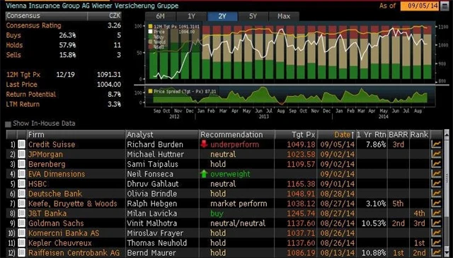 Credit Suisse snižuje doporučení na akcie VIG z "neutral" na "underperform" s cílovou cenou 1 049 Kč Redakce IW5. 9. 2014 | 8:20Investiční doporučeníZdroj: BloombergPodívejte se na aktuální videoAkcie ČRInvestiční doporučeníVienna Insurance Group (VIG)Redakce IW Další články autoraZtráta Photon Energy za prvních devět měsíců roku se prohloubila na skoro 10 milionů eurGevorkyan za prvních devět měsíců roku vykázal EBITDA skoro 23 milionů eurTOP 10 článků týdne: Udýchaný akciový býk, další velký SHORT a výhledy pro zlato a bitcoin DoporučujemeBitcoin má za sebou stovky pohřbů, ale odmítá zůstat mrtvýBitcoinAI euforie žene index S&P 500 do extrémů. Bank of America radí, kam teď "schovat" penízeDiverzifikace investicNervozita na Wall Street: Americké akcie zahajují čtvrtý rok býčího trendu učebnicově, situace připomíná rok 1998Americké akcie Aktualitydnes | 16:23Walmart jedná o převzetí startupu, který má potírat padělky v online prodejidnes | 15:58Klimtův portrét se prodal za 236 milionů dolarů. Ožívá trh s uměním?dnes | 15:41Americké akcie v úvodu: Dow +0,09 %, S&P 500 +0,53 %, Nasdaq Composite +0,86 %dnes | 15:15Evropa by mohla dostat plyn z nalezišť u Kypru už v roce 2027dnes | 14:42USA: Obchodní bilance se v srpnu výrazně zlepšila, deficit klesl na 59,6 miliardy USDdnes | 14:21Cena akcií Semrush vystřelila přes 70 % po zprávě o možné akvizici Adobednes | 14:08Společnost Lowe’s překonala odhady zisku díky silnému online prodejidnes | 13:55Goldman Sachs: V roce 2026 budou dále klesat ceny ropydnes | 13:50Larry Summers rezignoval z představenstva OpenAI po zveřejnění komunikace s Epsteinemdnes | 13:33Futures na americké akcie: Dow +0,18 %, S&P 500 +0,37 %, Nasdaq 100 +0,47 %dnes | 13:06USA: Index žádostí o hypotéky MBA k 14. listopadu stoupl o 6,37 % (předchozí týden: +6,34 %)dnes | 12:51Target snížil výhled zisku, tržby ve třetím čtvrtletí znovu kleslyZobrazit všechny aktuality