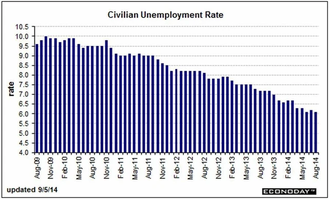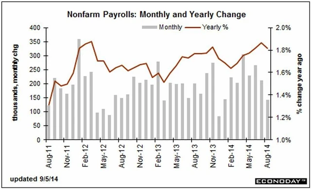 Americká ekonomika v srpnu mimo zemědělství vytvořila jen 142 tisíc pracovních míst. Analytici oslovení agenturou Bloomberg očekávali přírůstek 222 tisíc míst po červencových 212 tisících (revidováno z 209 tisíc). Soukromý sektor vytvořil 134 tisíc nových pracovních míst. Celková míra nezaměstnanosti v souladu s odhady proti červenci klesla o desetinu procentního bodu na 6,1 %, což částečně odráží fakt, že řada lidí snahu o získání práce vzdala, a vypadla tak z evidence nezaměstnaných.