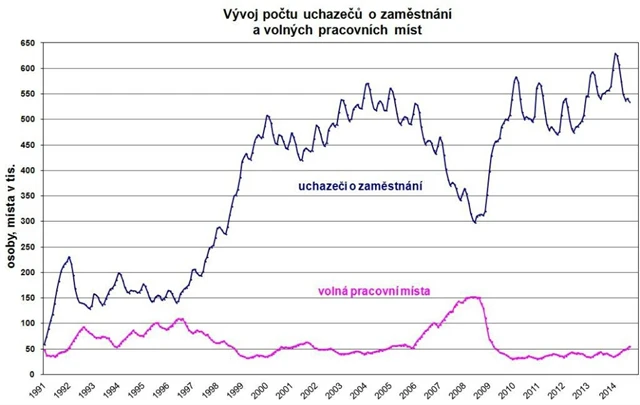 Na jedno volné pracovní místo připadá 9,8 uchazeče. Z toho nejvíce v okresech Ústí nad Labem (35,2), Karviná (34,4), Sokolov (32,7), Bruntál (30,5) a Hodonín (27,8).
