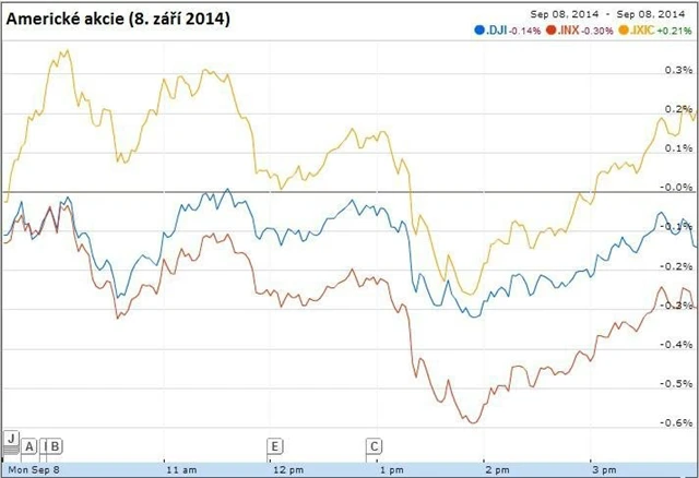 ExxonMobil a Chevron obě odepisovaly přes procento a vedly index Dow do červených čísel. Automobilka Ford reagovala oslabením o 2 % na snížení doporučení ze strany banky Morgan Stanley. Rally naopak zažila společnost Yahoo! (+5,61 %) poté, co byla zveřejněna zpráva o tom, že by během IPO firmy Alibaba, v níž má Yahoo! více než 22% podíl, mohla Alibaba získat přes dvacet miliard dolarů.