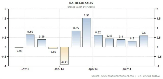 Maloobchodní tržby ve Spojených státech v srpnu vzrostly o 0,6 % v souladu s očekáváním trhu (červenec: 0,3 %), což bylo nejvíce za poslední čtyři měsíce. Bez zahrnutí aut se tržby zvýšily o 0,3 %, rovněž v souladu s predikcemi trhu a stejně jako v červenci.
