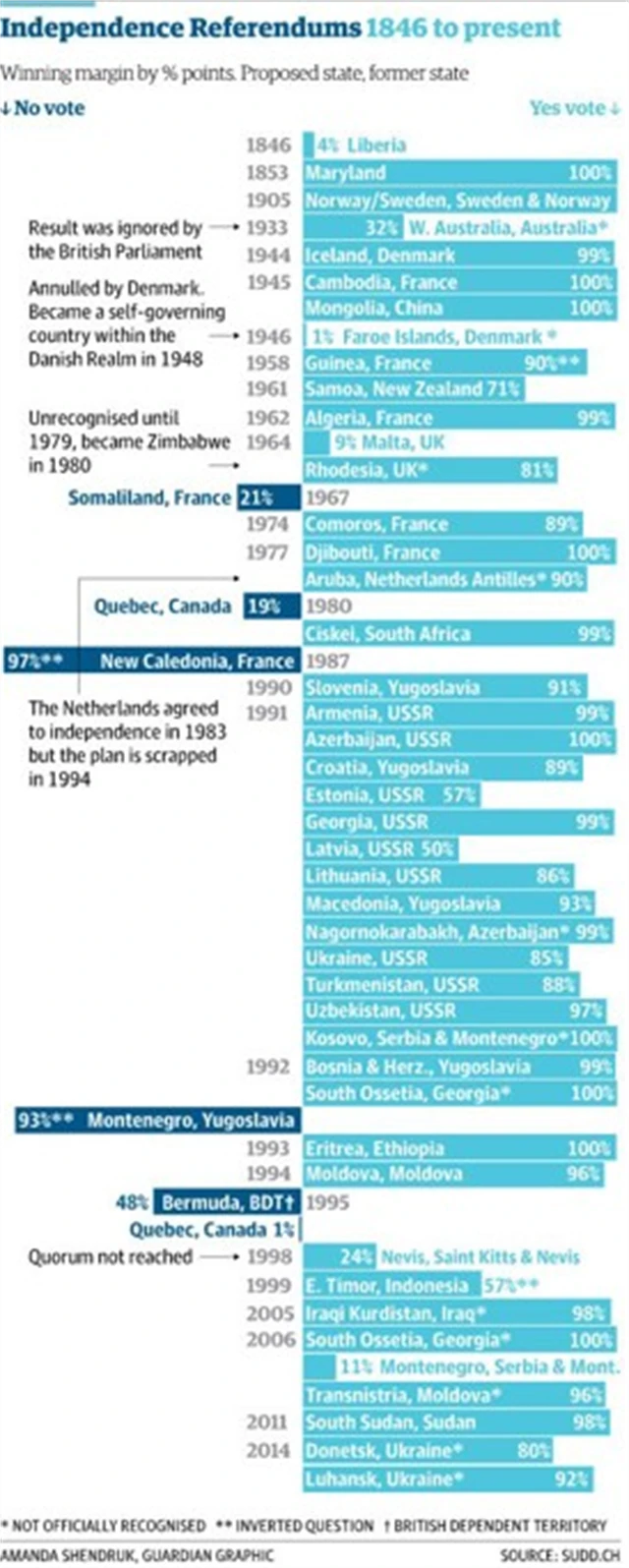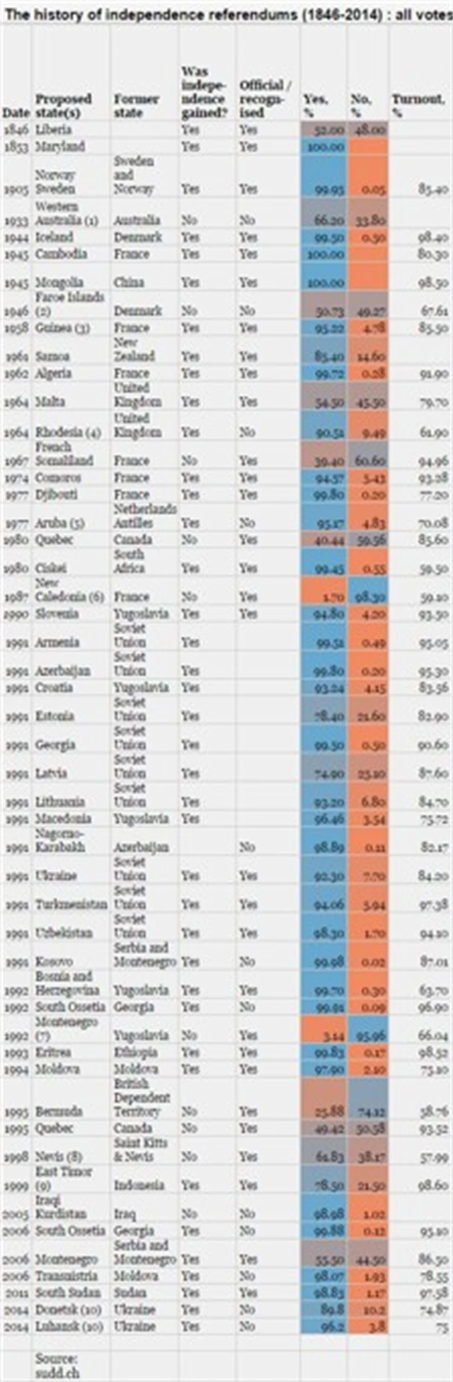 Vzepře se Skotsko statistice? Od roku 1846 skončilo 88 % plebiscitů vítězstvím přívrženců nezávislosti