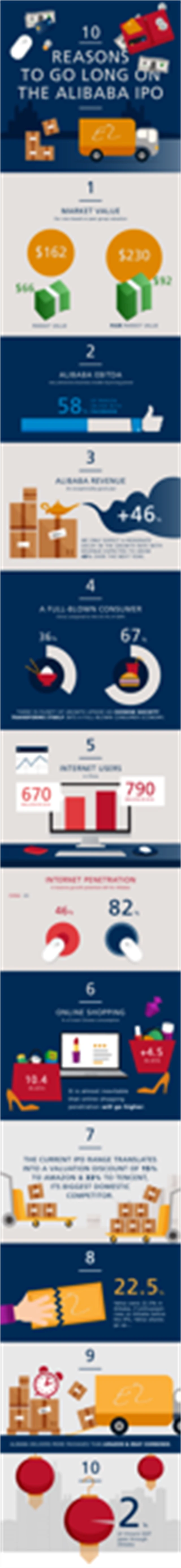 Čínská e-commerce společnost Alibaba své akcie v rámci IPO na NYSE upsala při ceně 68 dolarů za kus. Společnost měla z IPO získat 21,77 miliardy dolarů, přičemž její celkové ocenění dosahovalo na základě stanovené upisovací ceny 167,62 miliardy dolarů. Primární veřejná nabídka akcií Alibaby se tím stala druhou největší takovou transakcí ve světové historii. Očekávalo se, že Alibaba akcie nabídne za 66 až 68 dolarů za kus. První obchod proběhl krátce před šestou hodinou (SELČ) s cenou 92,70 dolaru za akcii. IPO jsme sledovali živě.