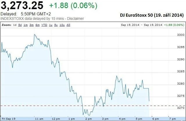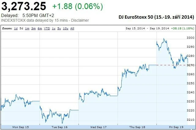 Evropské akcie v závěru týdne posílily díky skotskému "ne"