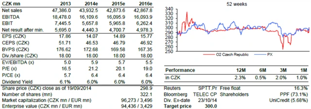 O2 C.R.: Shrnutí doporučení "držet" s cílovou cenou 300 Kč od Erste Group