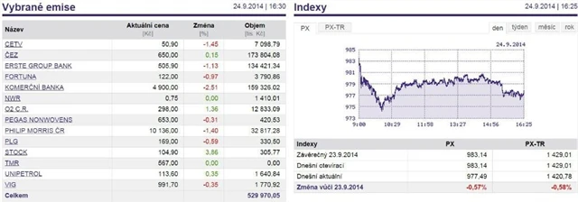 Index PX ve středu odepsal 0,57 % na 977,49 bodu.