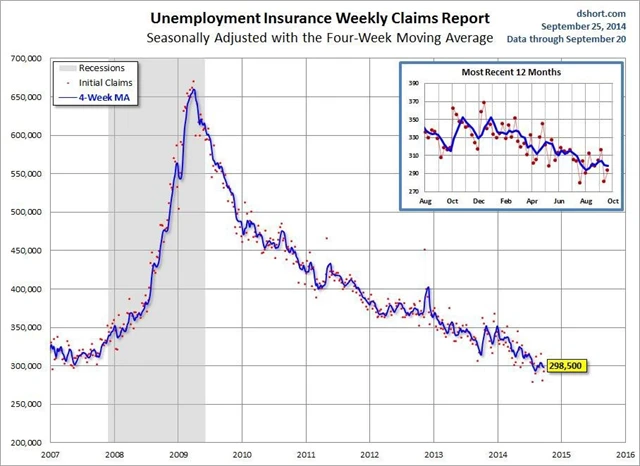 Počet nových žádostí o podporu v nezaměstnanosti v USA v týdnu do 20. září vzrostl o 12 tisíc na 293 tisíc. Čekal se růst na 295 tisíc z 281 tisíc v předchozím týdnu (revidováno z 280 tisíc). Čtyřtýdenní průměr nových žádostí klesl na 298 500 z 299 750 (revidováno z 299 500). Počet pokračujících žádostí vzrostl v týdnu do 13. září o 7 tisíc na 2,439 milionu z 2,432 milionu (revidováno z 2,429 milionu). Očekával se růst pokračujících žádostí na 2,440 milionu.